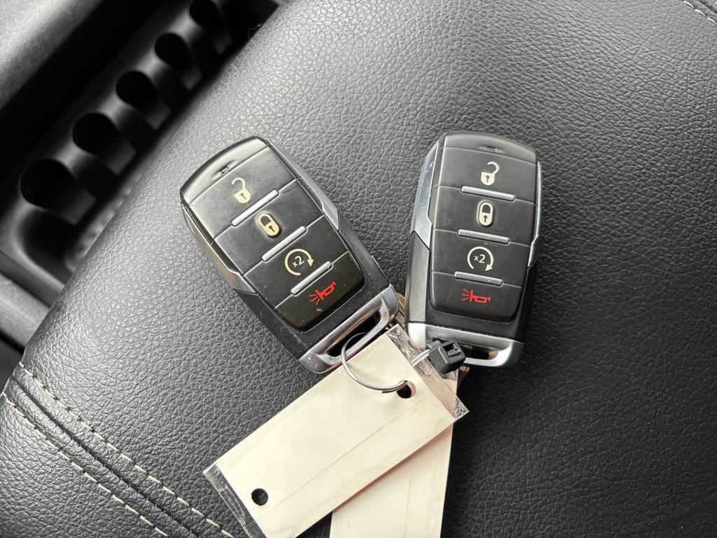 The spacious interior of this Ram 1500 is designed with your comfort in mind. Enjoy the convenience of dual-zone climate control, a heated steering wheel, and power-adjustable pedals. Stay connected with the Uconnect infotainment system, which offers SiriusXM satellite radio, a 400W inverter, and seamless smartphone integration.