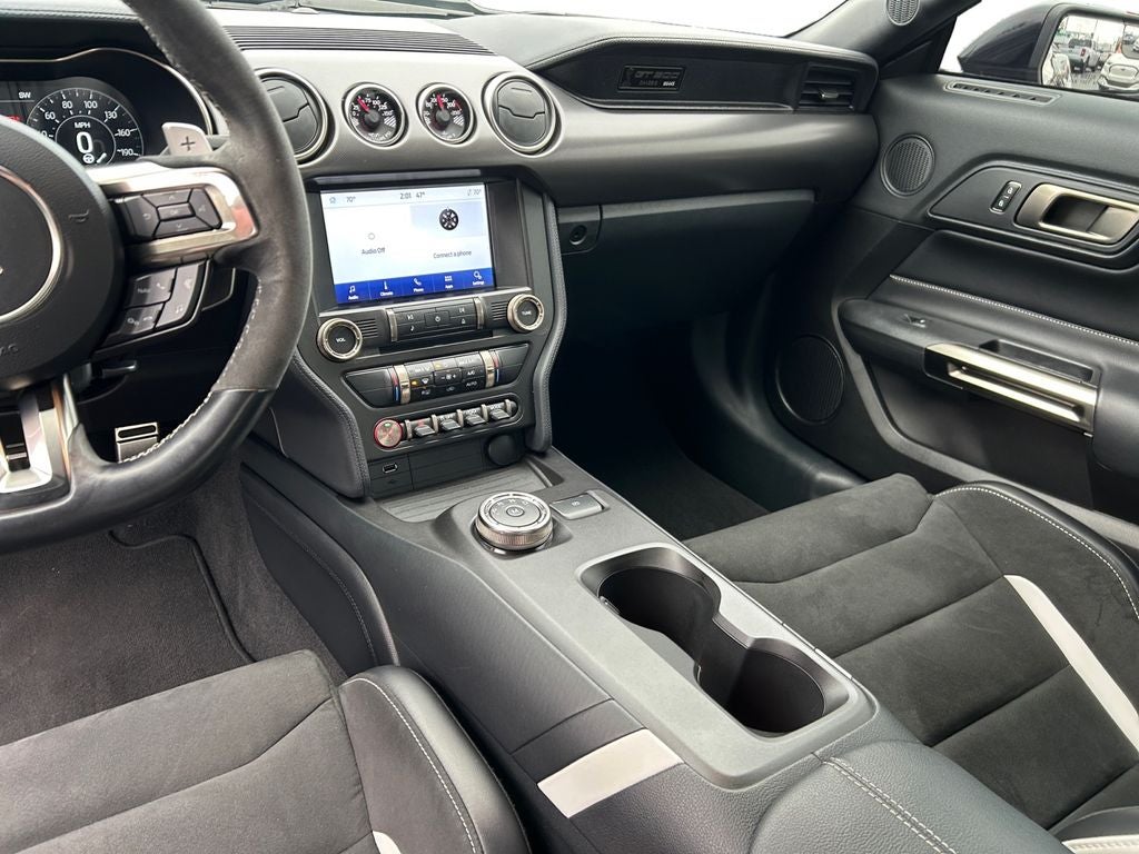 Inside, the Shelby GT500 pampers you with a host of premium features, including a premium audio system, dual-zone climate control, and a state-of-the-art infotainment system with navigation. The Recaro leather-trimmed seats with Miko suede inserts provide exceptional comfort and support, ensuring you can enjoy the ride in style.