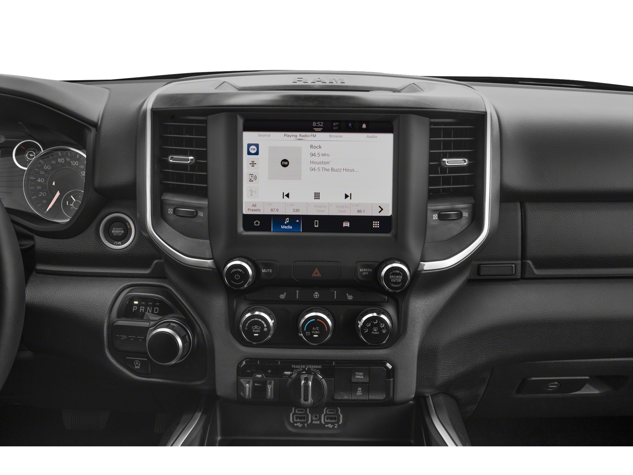 - Radio w/Seek-Scan, Clock, Aux Audio Input Jack, Steering Wheel Controls, Voice Activation, Radio Data System and External Memory Control