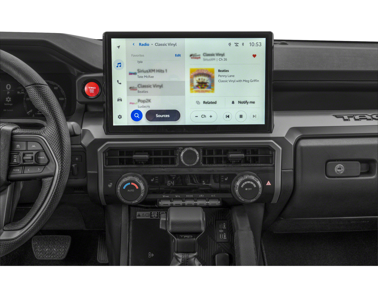 Safety is also a top priority, with the Tacoma TRD Off-Road boasting a comprehensive suite of advanced driver-assistance technologies, including Front & Rear Parking Assist with Automatic Braking, Auto High-Beam Headlights, and the Emergency Communication System with Safety Connect.