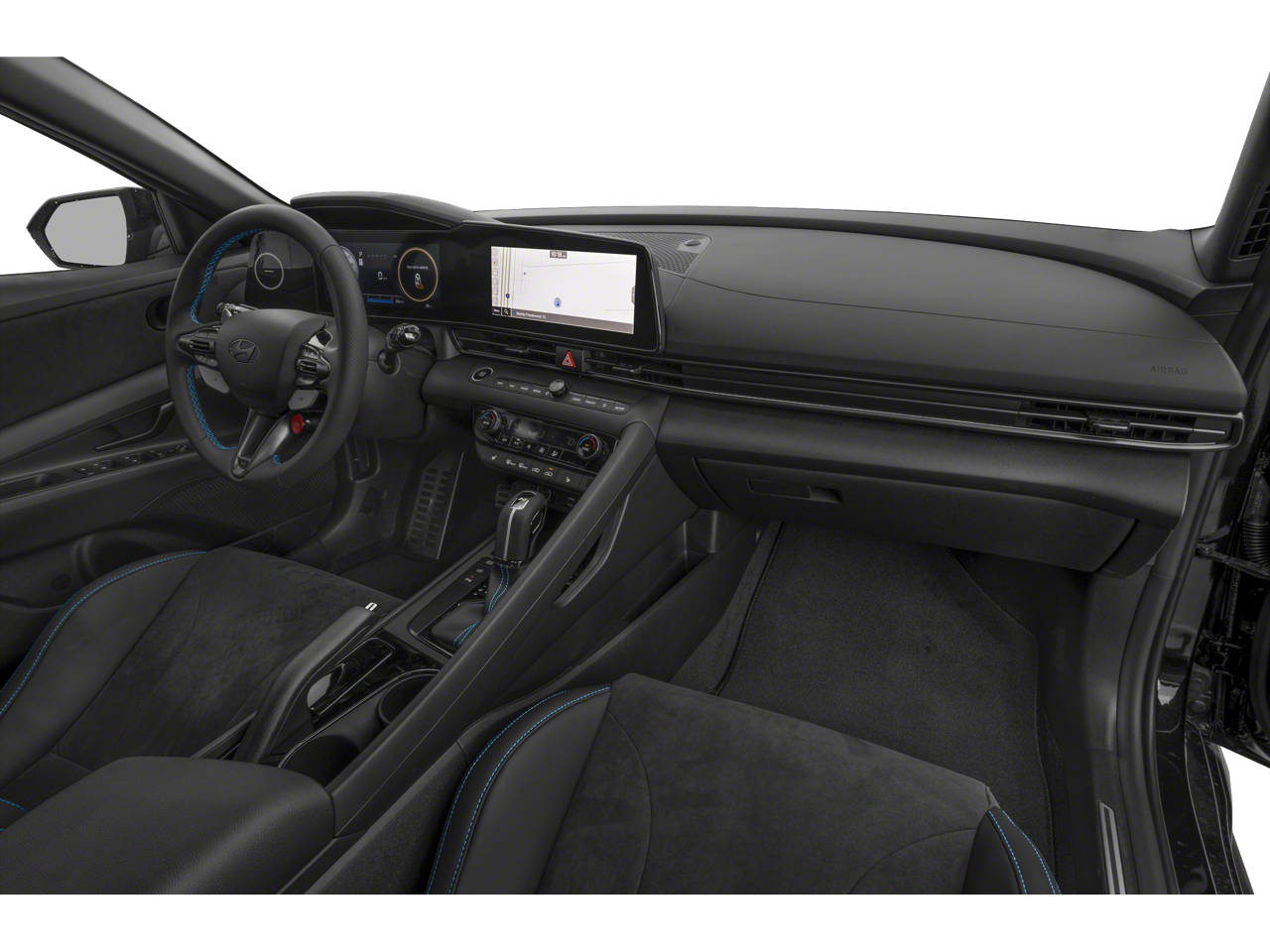 The Elantra N's striking exterior design commands attention, with its bold front grille, sculpted bodylines, and aggressive stance. Step inside and you'll be greeted by a premium cabin that seamlessly blends sport-inspired styling with exceptional comfort and technology. Enjoy the precision of the leather-wrapped steering wheel, the convenience of the intuitive infotainment system, and the added confidence of advanced safety features.