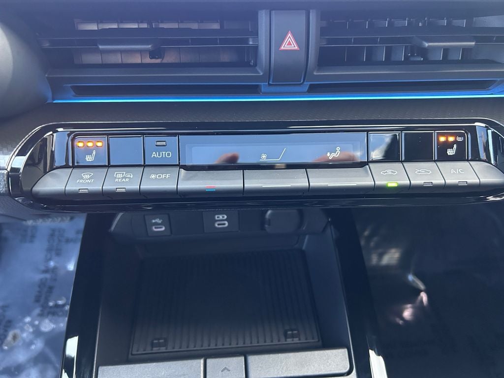 Step inside and be captivated by the Prius Nightshade's premium interior, which seamlessly blends style and technology. The 12.3 Toyota Audio Multimedia System, complete with Apple CarPlay and Android Auto integration, keeps you connected and entertained on every journey. The heated steering wheel and front seats ensure maximum comfort, while the Panoramic Fixed Glass Roof floods the cabin with natural light, creating a truly immersive driving experience.